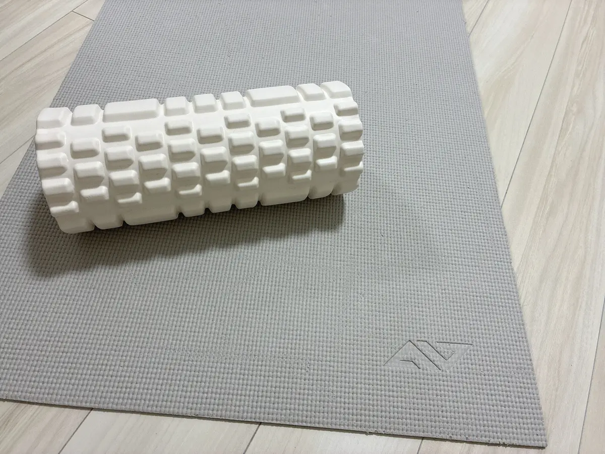 ★ストレッチ:筋膜ローラーで背中や脚をほぐす。
