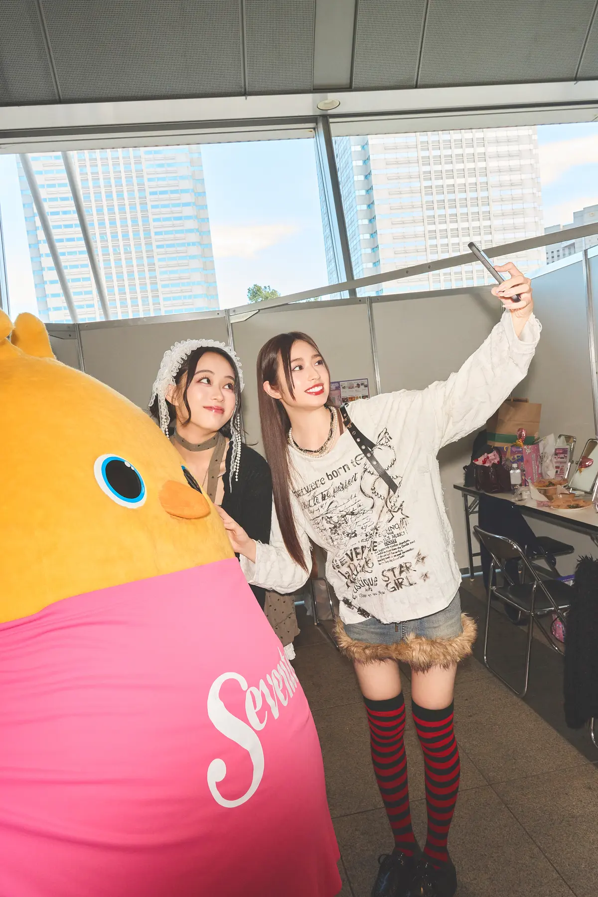 ステージまでの空き時間には、ゲルぴよちゃんが楽屋に遊びにきてくれたの。そのときのST㋲との絡みがかわいすぎるからみんなにもお裾分け。ぽてぽて歩く姿もかわいすぎるし、ファンサも全部対応してくれるし、愛嬌がすごすぎてモデルみんなメロメロ♡
