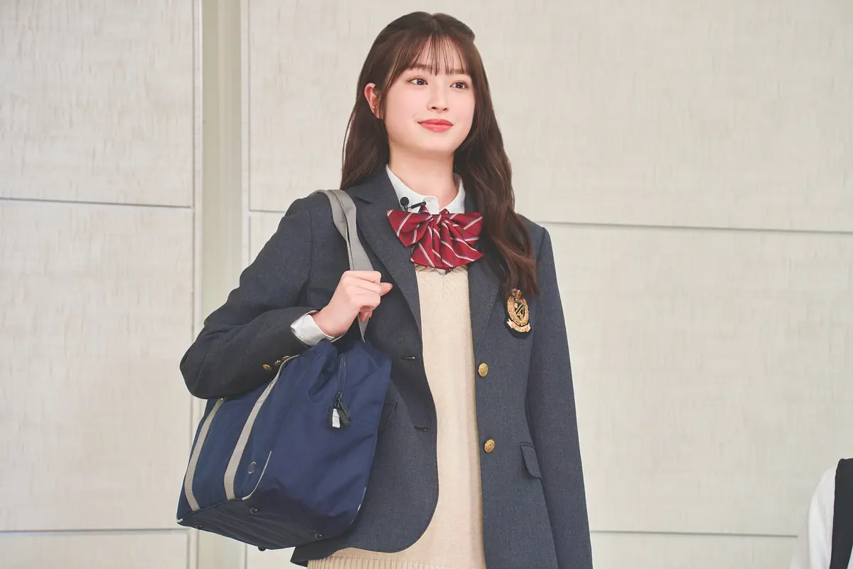 杏也菜「王道清楚といえばブレザーですよね。今日はきれいめに見えるジャストサイズを選んでみました。人気の王道コーデに、あえてナイロンのスクバを合わせることで、ちょっとカジュアルで親しみやすい雰囲気になるので、新学期デビューにもおすすめです!」