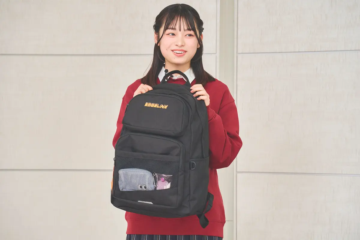 リュックはエッジリンクのポケットメイト。カジュアルな雰囲気で、通学からお出かけまで幅広く使えそう!